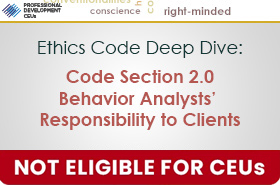 We are proud to introduce the next installment of our ethics series focusing on delving into scenarios and discussion of the new Professional and Ethical Compliance Code for Behavior Analysts. This webinar is presented by Dr. Jon Bailey, PhD., BCBA-D, and co-author of Ethics for Behavior Analysts will be focusing on code 2 of the Professional and Ethical Compliance Code for Behavior Analysts. This section of the code discusses the responsibilities Behavior Analysts have with their clients. Issues such as appropriate billing practices, third-party involvement, and confidentiality were discussed.